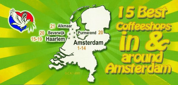 私は、これまでオランダ中のコーヒーショップを訪れ、外見やサービス、心地よさ、それとカナビスの品質や値段などについて評価してきました。今回は、アムステルダムとその近郊で特にお薦めする15軒の素晴らしいコーヒーショップといくつかの関連ショップを厳選してご紹介します。