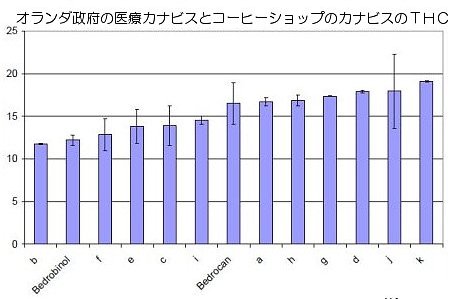 オランダ政府の医療カナビスとコーヒーショップのカナビスを比較した研究によると、THC濃度については差はないものの、細菌のコロニー数では圧倒的な違いが報告されている。