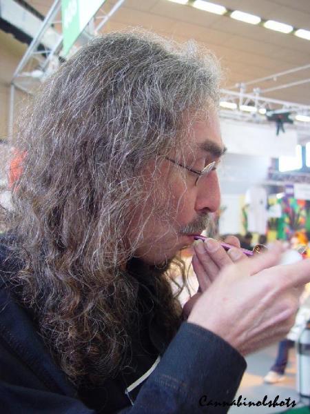 私たちは共通の友人であるイーグル・ビルに出会った。彼はカナビスのシャーマンで人々をバポライズするためにヨーロッパ中を旅している。このコンベンションに来る途中、ベルギーでカナビス所持の疑いで調べられ捕まって罰金をくらった。ベルギー警察はほとんどのカナビスを押収したが全部ではなかった。ビルはバッズを別のところにも隠していたので、たいしたショックも受けていなかった。