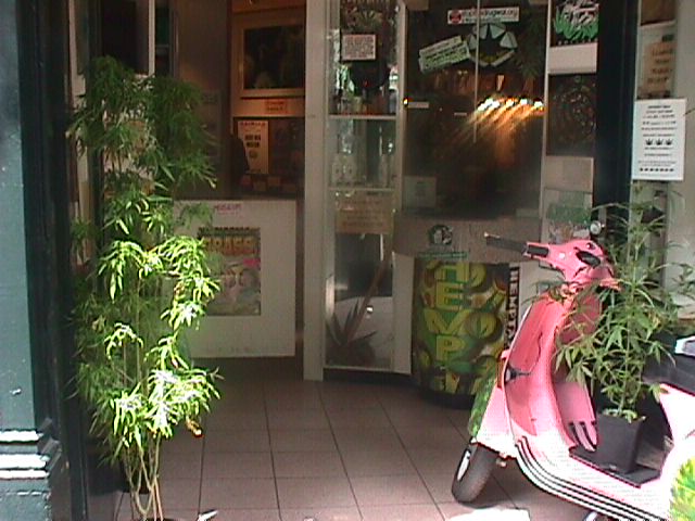 オランダはチューリップを始めとする花の栽培で有名だが、その栽培技術を応用して麻の品種改良が行われ現在では最高品質のマリファナがつくられている。ここは種子バンクにもなっていていろいろな産地の麻の種も販売している。ポップには産地名のほかにも、生育には何日かかるかや何グラム採れるかなども書いてある。栽培器具や肥料、栽培法のビデオなども揃っている。毎年11月にはここの主催で利き酒会ならぬ麻の品評会が開かれているそうだ。