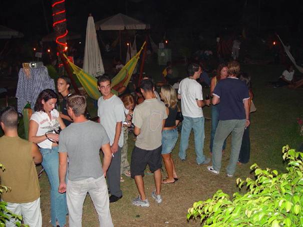 マンボでは季節ごとに何回か、DJや映画やショーなどのガーデン・パーティも行っている。パーティの夜に空いているハンモクを見つけるのは至難。