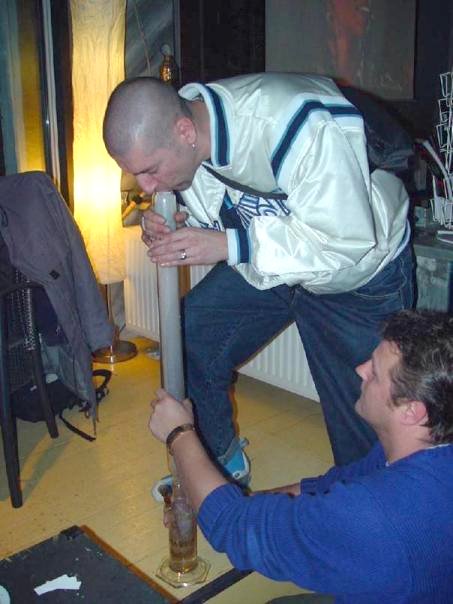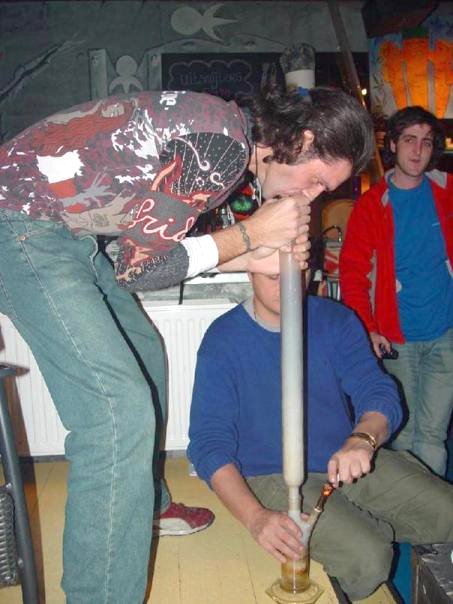 食後の喫煙タイムになってマセールがメートル・ボングを持ち出してきた。手本にまず私が一服。続いてカルロ。うまく吸い込んだ。