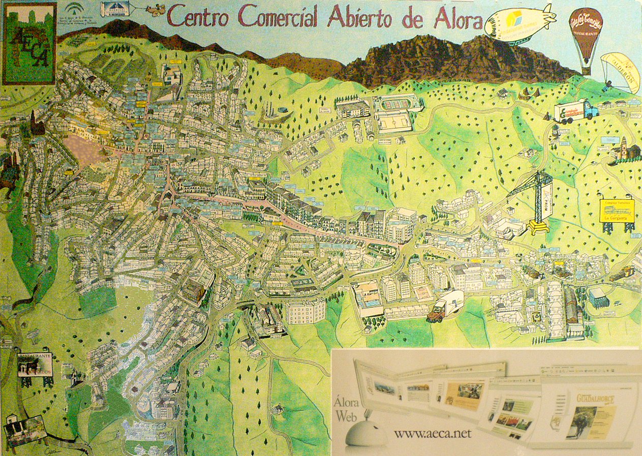 町の中心は急峻な山頂にある。昔は山城だったが、今では山のまわりになだらかな農地が広がっている。コスタデルソル(Costa del Sol、太陽の海岸)とは太陽が溢れていることでは同じだが、バレーデルソル(Valle del Sol、太陽の谷)とも言われるアローラでは全く違う世界が息づいている。(ダウ)